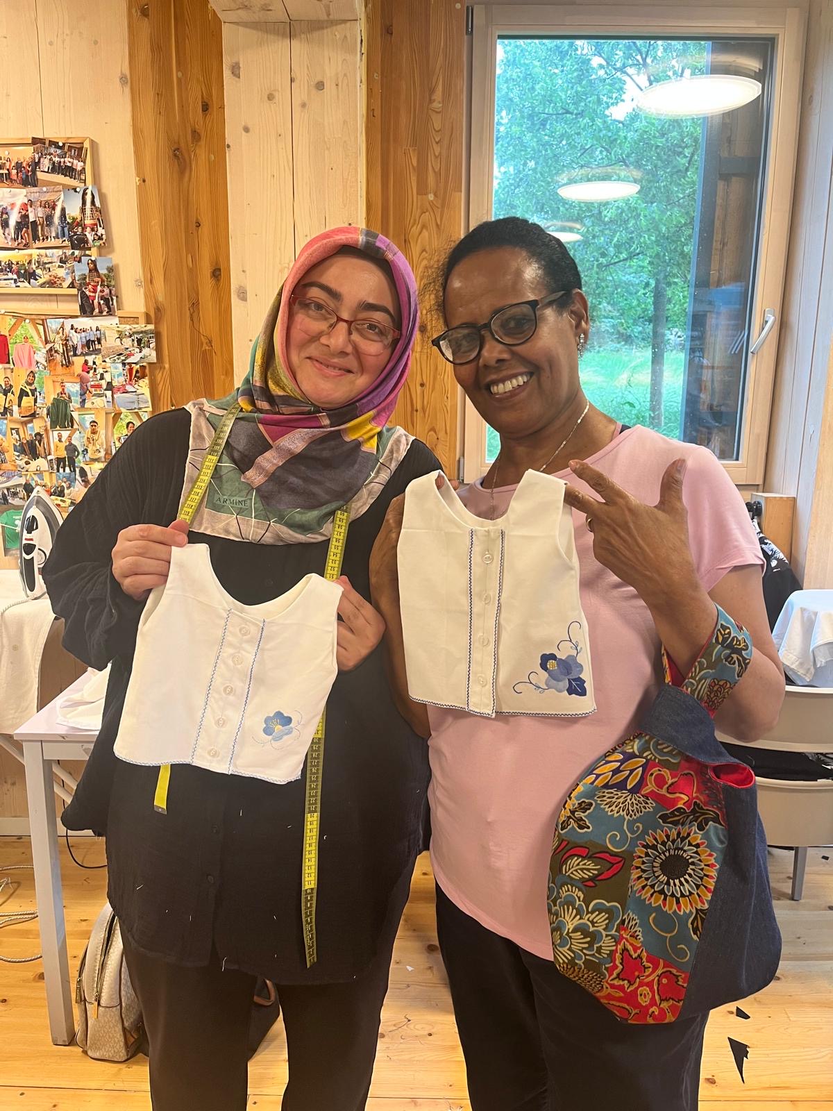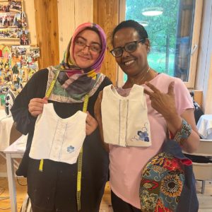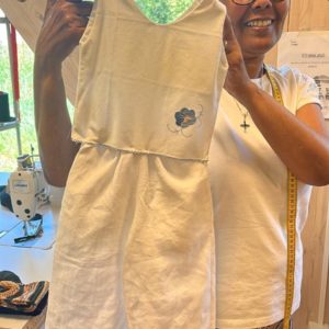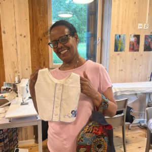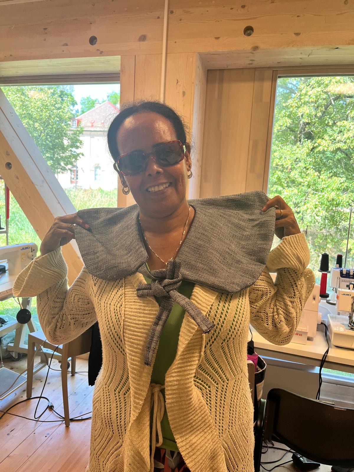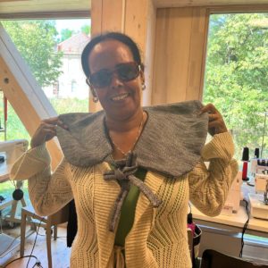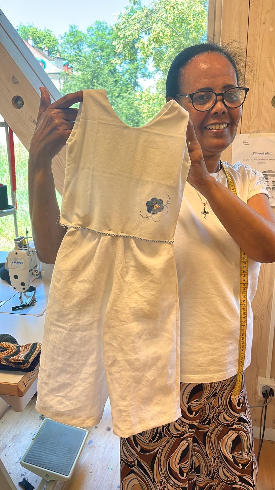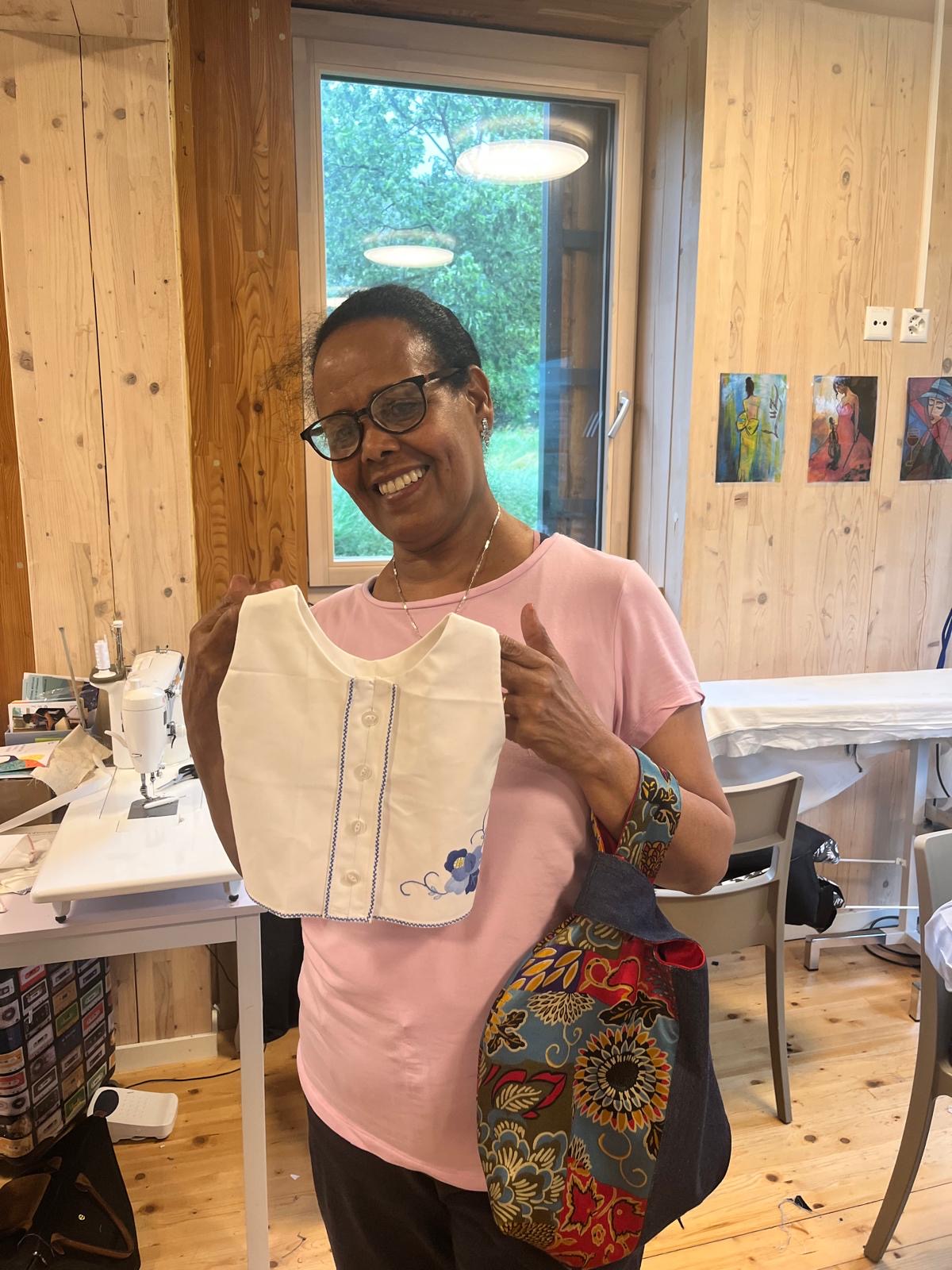 Seble vient d’Ethiopie et habite à Genève depuis 1997. Elle a appris la couture à l’école, dans son pays d’origine. En arrivant en Suisse, elle a fait un stage de couture et retouche durant 7 mois. Par la suite, elle a été amenée à faire des retouches de vêtements pour les clients d’un hôtel et d’une blanchisserie où elle travaillait. Fréquenter Tisser l’avenir lui a permis d’améliorer ses compétences dans la couture, d’acquérir de nouvelles techniques et de développer sa créativité. D’après elle, le mélange de nationalités fait au sein de l’atelier est une véritable richesse.